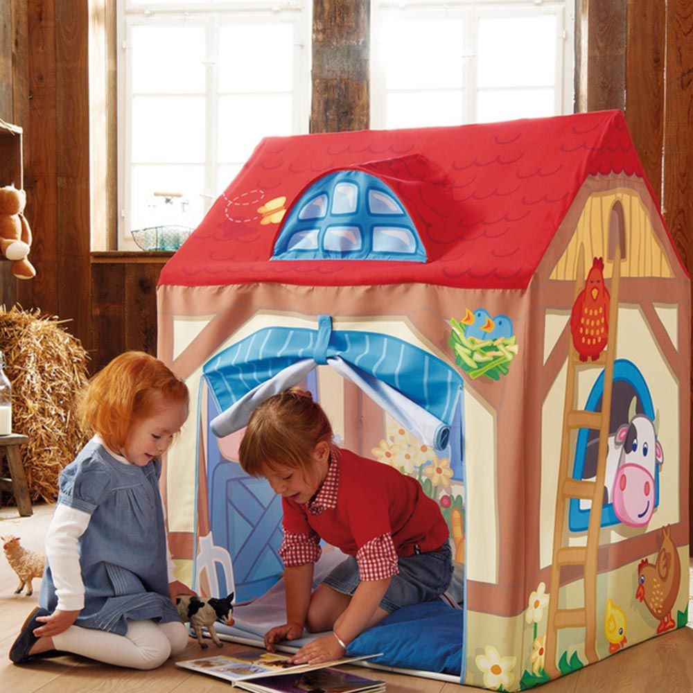 A keret részekre bontható fém állványokból készült, így a szerkezetet mindig magaddal viheted a nyaralásra.Az ablakok és ajtók speciális kötőelemekre vannak rögzítve, amelyeket a gyermek szükség esetén önállóan tud kioldani.