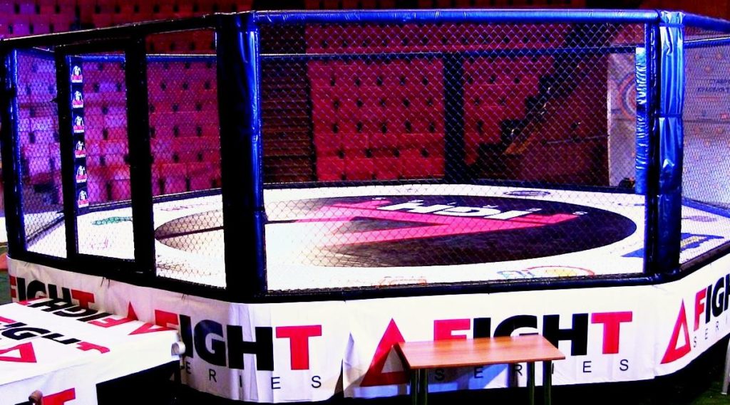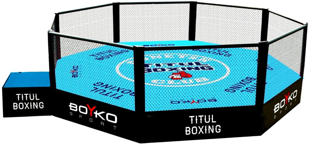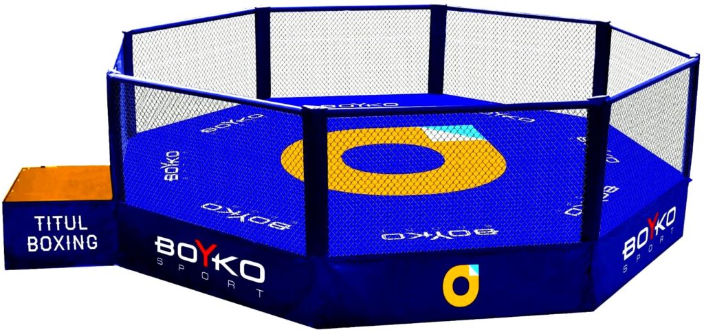 Az ilyen típusú MMA nyolcszög vagy ketrec egy méter hosszú platformra van felszerelve, amely tökéletesen megbirkózik a gyakori összeszereléssel, szétszereléssel és szállítással. A keret kialakítási jellemzői a gyakori mozgásokhoz igazodnak. A készletben megtalálod a szükséges párnákat, részeket és huzatokat is. A munkafelület átmérője 8 méter, ami szakmai versenyekhez elegendőnek tekinthető. A televíziós platform szélessége 0,5-1 m. A padlóburkolatok gyártásához 160 kg / m3 sűrűségű és 40 mm vastag PVC-t használnak. A pamut huzat is elfogadható. A háló acélból készült, és védő (por) bevonattal rendelkezik.