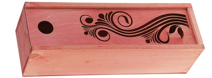 Faragott fadoboz tolltartó formájában. Lehetővé teszi szabványos tartályok elhelyezését bor, konyak, pezsgő stb. tárolására. Alkalmas tárolásra és szállításra, valamint ajándékcsomagolásra. Méretek: 10,8x10,8x33,3 cm Költség: 532 rubel.