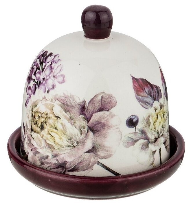 Ez a citromfű a Violet konyhai edénycsalád része.Kerámiából készült és nincs lába, de stílusos kivitelben készült - lila állvány és fehér tető, melyen orgona és levendula minták vannak ábrázolva. A fedél fehér kerek fogantyúval végződik. Ezenkívül a modell speciális bevonattal van ellátva, amelynek köszönhetően ez a citromkészítő mosogatógépben mosható. A hosszúság, szélesség és magasság aránya 11,5x11,5x11,5 cm.