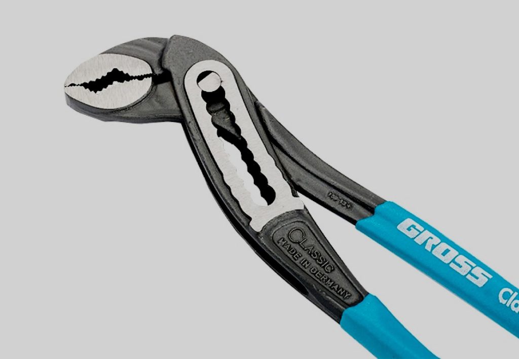A német cég állítható befogószerelvényeket gyárt ürítő fogantyúkkal és nyomógombos mechanizmussal. Megkülönböztető jellemzők: kopásállóság és nagy szilárdság. A szerszám csövek forgatására és rögzítésére szolgál. Nélkülözhetetlen asszisztens lakatos és összeszerelő munkákban. Az acél munkaszivacsok szorosan és szépen tartják az elemeket. Van egy horony a szögek és a drót megfogására és megtartására. Az áztatott gumírozott fogantyúk minőségileg a tenyerében fekszenek, nem csúsznak és nem esnek ki. A fogók gyártása során kiváló minőségű acélt használnak. A termék súlya mindössze 330 gramm. Függőkártya mellékelve.