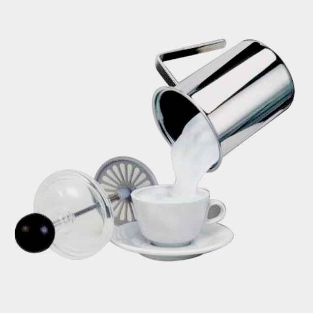 A termékek rozsdamentes acélból készülnek. Az egyszerű kialakítás nem befolyásolja a teljesítményt: gyorsan és hatékonyan felveri a tejet, amíg sűrű és buja hab nem képződik. Túlnyomja a zsíros tejtermékeket. A készlet tartalmaz egy habverőt és egy műanyag fedelet. A habosító térfogata 300 ml, de sokkal kevesebb tejet öntünk, hogy a hab illeszkedjen. A mechanikus vezérlésű autonóm termékek kategóriájába tartozik.