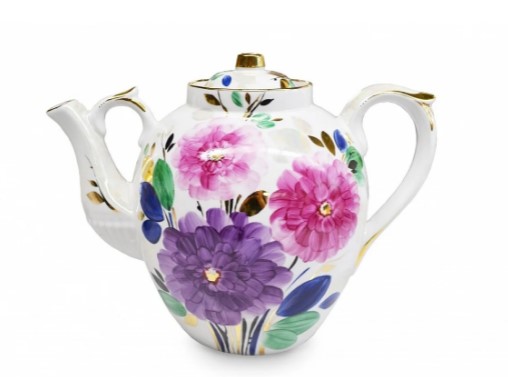 A legnagyobb gyártó terméke nemcsak Oroszországban, hanem egész Európában. Igazi műalkotásnak tekinthető, hiszen tehetséges művészek, szobrászok dolgoznak formáján és külső kialakításán. A 4,5 literes óriás teáskanna egy teljes értékű szamovár igazi orosz tea összejövetelekhez családdal és barátokkal. A különleges ételfestékek és 24 karátos arany segítségével kézzel készült, utánozhatatlan festményen szereplő tárgy egyedisége minden egyes tételnél eredeti.Az üzem szakemberei az ergonómián is dolgoztak: a teáskanna kényelmes, nagy fogantyúval rendelkezik, a kifolyó fölött van egy második fogantyú, amely megfelelő szögben készült és kellően vékony ahhoz, hogy a tea pontosan a csészébe kerüljön. Döntve a fedél nem esik le a kerület körüli magas oldalak miatt. Egy színes eredeti praktikus terméknek egyetlen hátránya van - nagy súly, körülbelül két kg üresen. Ezért nem mindenki képes felemelni egy tele teáskannát.