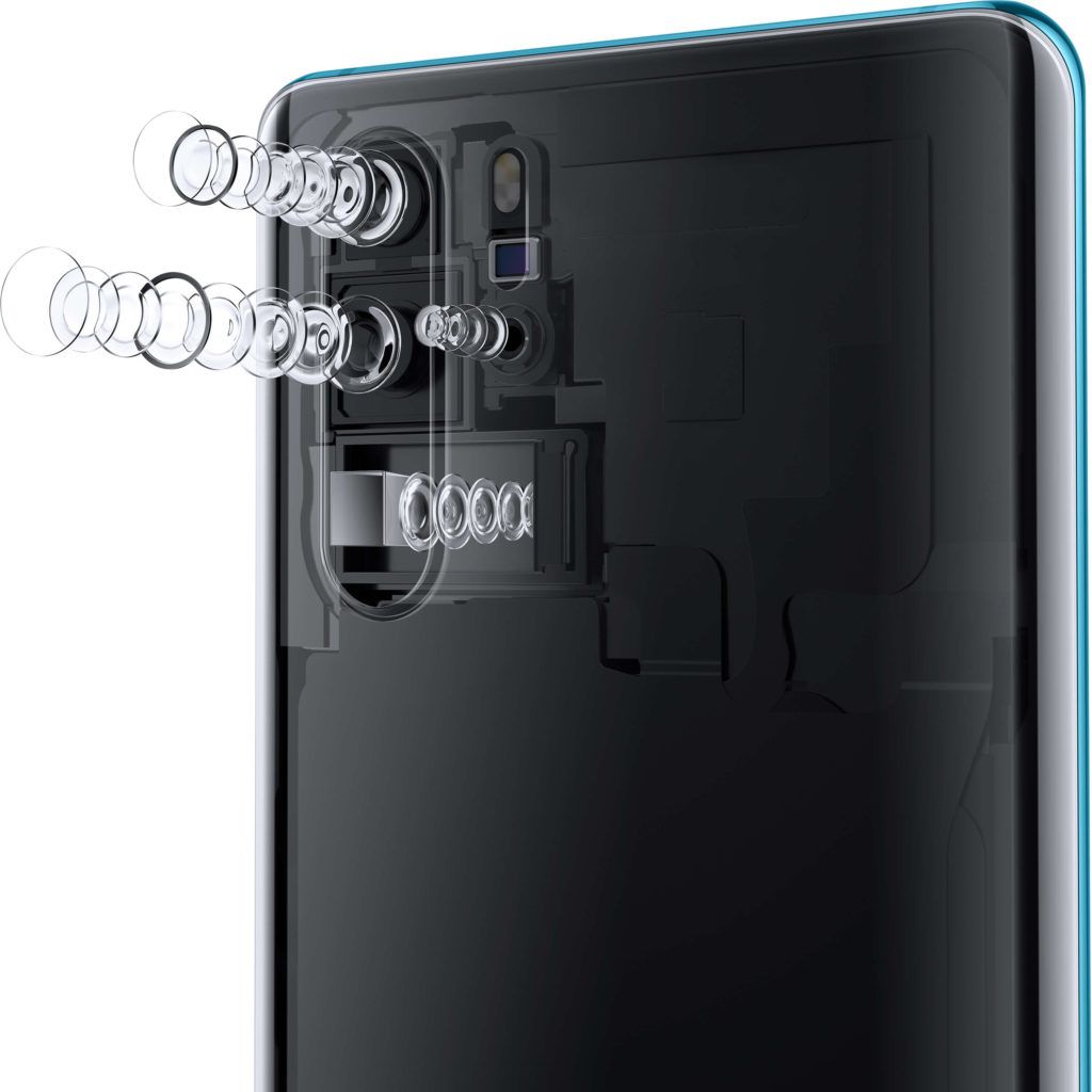 A Puawei P30 Pro négy kamerával vezeti a fényképezőgép-evolúciós listát. Hármat egy csoportba egyesítenek, a negyediket külön szedik ki, és a tengelyük közepén helyezkednek el. A felső 20 MP felbontású. Ultraszéles látószöggel és f/2.2-es objektívvel rendelkezik. Ezt követi a 40 MP-es főkamera, széles látómezővel, f/1.8-as rekesznyílással és képstabilizátorral. Az alábbiakban egy 8 MP-es érzékelő található f / 3,4 rekesznyílással, periszkóp objektívekkel, teleobjektív opcióval, autofókusszal, digitális zoommal. Negyedik ToF kamera 3D fényképezéshez. A közelben van egy LED vaku.