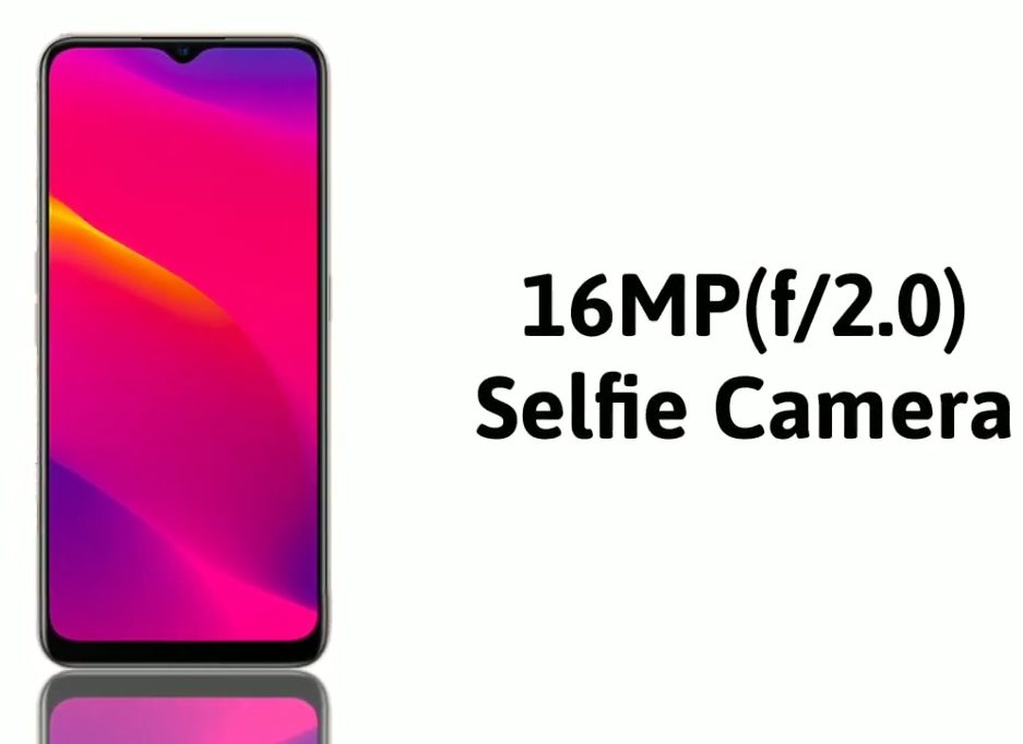 Az előlapi kamera helye, mint nagyon sok modern okostelefon modell, csepp alakú kivágás lett az előlap tetején. Egyetlen érzékelővel van felszerelve, 16 megapixeles felbontással, rekesznyílása f / 2.0. Az érzékelő nagy dinamikatartományban működik, videót rögzít 1080p@30fps formátumban.