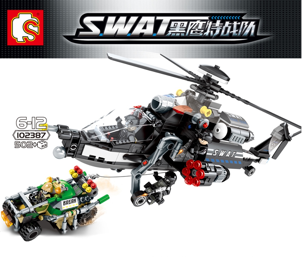 Set berisi 502 item. Blok ditempatkan dalam paket yang nyaman, yang mudah untuk selalu Anda bawa. Juga termasuk 4 orang yang dapat ditempatkan di dalam helikopter.