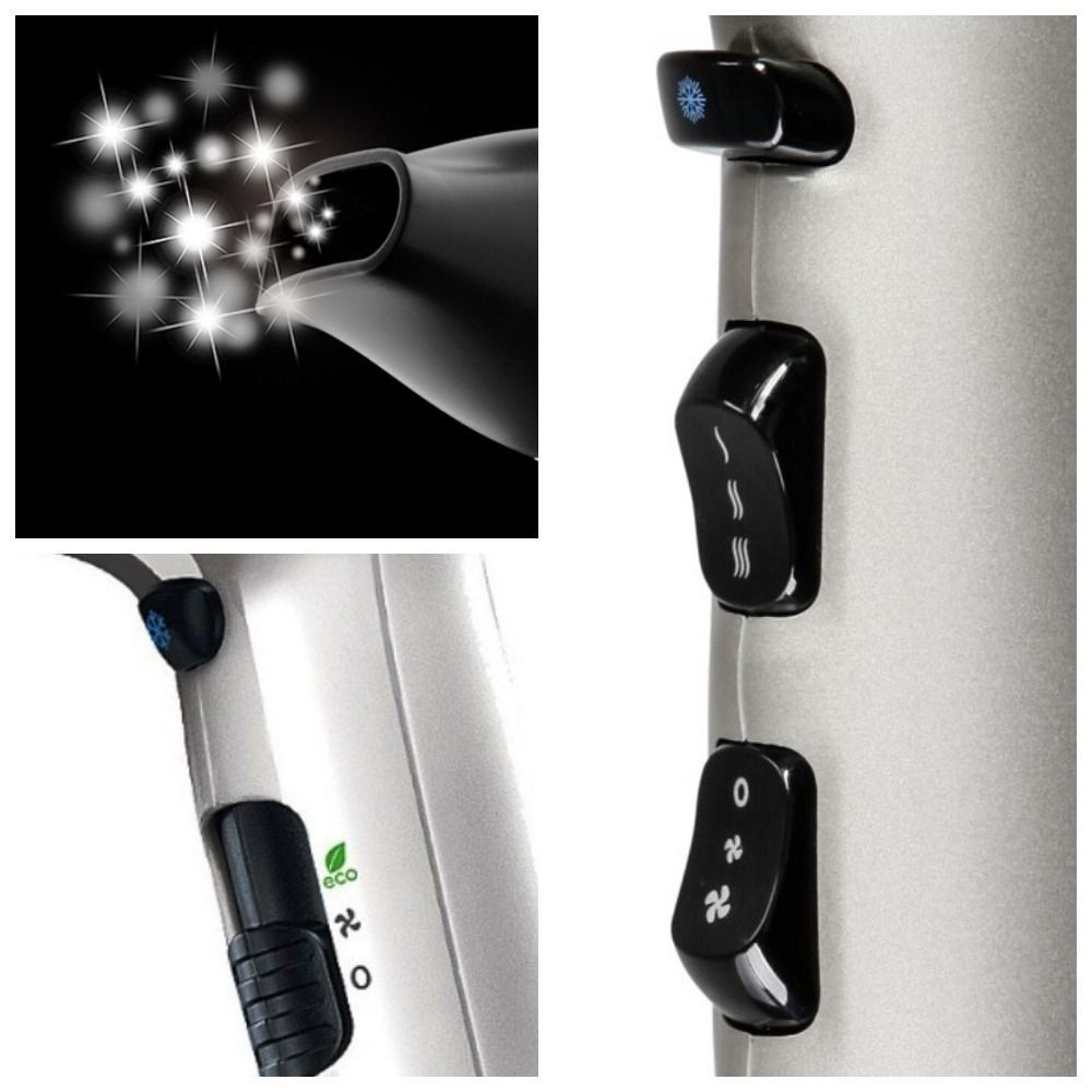 Keunikan model terletak pada adanya aliran 3D dan optimalisasi kondisi termal. Hasilnya dicapai dengan cepat dan tanpa kerusakan. Ini menggunakan 3 nozel yang berputar, mengarahkan aliran atau menciptakan difusi. Fitur-fitur ini akan memungkinkan Anda untuk mencapai tingkat penataan rumah yang tidak lebih buruk dari salon.