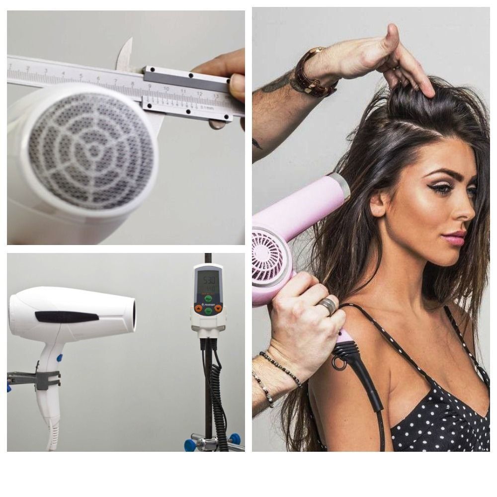 Aliran udara dari 70 ° hingga 120 ° dikeluarkan dari nosel. Tapi suhu tidak diukur dalam Celcius. Gradasi diterapkan - opsi rendah, sedang, panas. Semakin lemah rambut, semakin lembut metode yang diterapkan. Di pengering angin rumah, ada 3 opsi suhu, di profesional - 6.