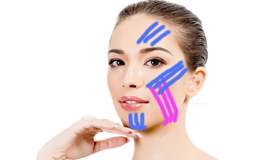 Tape digunakan untuk memperbaiki bentuk oval wajah, menghaluskan kerutan meniru dan meredakan pembengkakan pada wajah. Tidak disarankan menggunakan kaset untuk olahraga, mereka cukup keras, mereka dapat membahayakan kulit wajah yang halus. Pita yang terbuat dari rayon dan katun, dengan lapisan perekat yang lembut, paling cocok.