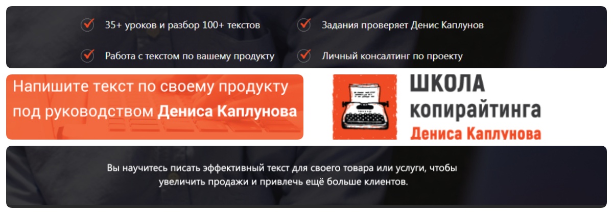Kursus online "Perancang teks penjualan" dari Denis Kaplunov