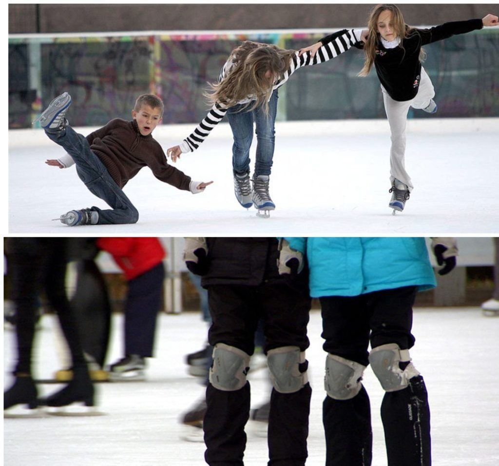 Dan karyawan akan mengambil semua tindakan agar iklim mikro di zona ini tidak berubah ke arah kehangatan. Ini berarti bahwa tidak disarankan untuk tampil di gelanggang es dalam ruangan dengan pakaian olahraga yang ringan.Selain itu, celana hangat, sarung tangan akan melembutkan pukulan saat jatuh, dan skating jarang dilakukan tanpanya, terutama pada tahap awal.