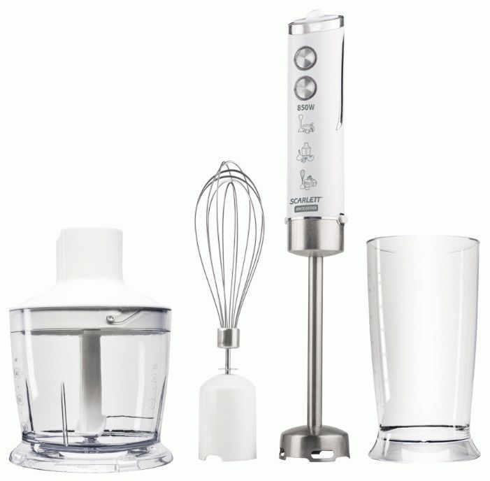 Blender submersible dengan daya yang layak, attachment canggih, dan kontrol elektronik. Ada selusin mode kecepatan dan opsi berguna untuk mengontrolnya - SpeedTouch. Tombol terletak di pegangan, jadi untuk mengubah mode, cukup sentuhan sederhana dengan jari Anda. Tombol kedua bertanggung jawab untuk mengganti nozel. Perhatian khusus diberikan pada desain asli dan nosel pengocok ganda untuk mencambuk.