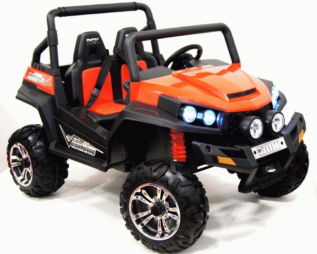 Mobil listrik ini bisa dibilang sebagai pilihan terbaik, memadukan tenaga dan kualitas. Mainan ini menangani off-road dengan mudah. Ia mampu berkendara hingga 4 jam terus menerus, berkat dua motor, dan mengatasi tanjakan yang cukup curam. Dua anak dapat duduk di dalam mobil, sabuk pengaman disediakan untuk keselamatan mereka. Mobil listrik ini cocok untuk anak-anak yang lebih besar, karena tidak memiliki remote control dan mampu berakselerasi hingga 8 km/jam.