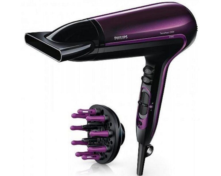Pengering rambut ini menempati tempat kedua yang terhormat karena suatu alasan. Di antara kelebihan model ini adalah daya tinggi, harga terjangkau, beberapa parameter suhu. Perangkat ini dapat direkomendasikan baik untuk digunakan di rumah maupun sebagai pilihan perjalanan, berkat pegangan lipat yang tersedia. Kelengkapan terdiri dari dua nozel dengan sifat konsentrat dan diffuser. Ini memungkinkan Anda untuk melakukan gaya apa pun sendiri. Berkat kekuatan 1800 W, Anda dapat dengan cepat mengeringkan untaian, tetapi pada saat yang sama perangkat bekerja dengan cukup tenang. Untuk kemudahan penyesuaian, semua tombol terletak di pegangan perangkat.