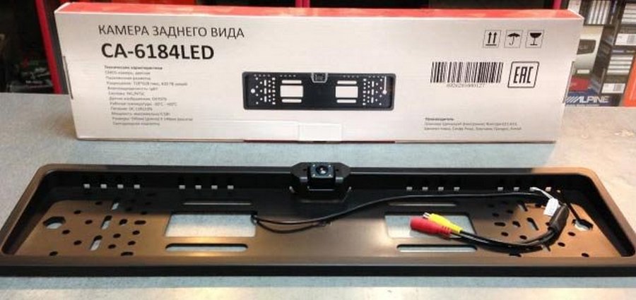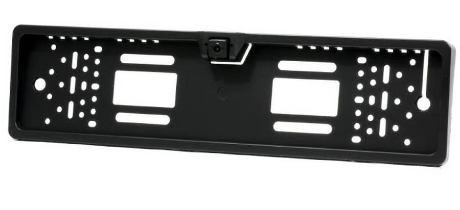 Sampel ini adalah yang paling mudah dalam hal integrasi - Anda hanya perlu memasukkan nomor ke dalam bingkai dan memasangnya di mobil, semua langkah lain telah diselesaikan di pabrik selama perakitan. Kamera mendukung gambar analog berwarna dan input videonya bersifat universal untuk hampir semua receiver. Dilengkapi dengan iluminasi inframerah tidak memerlukan penggunaan tambahan lampu penanda belakang. Tubuh benar-benar disegel, dan sudut pandang dapat disesuaikan secara horizontal.