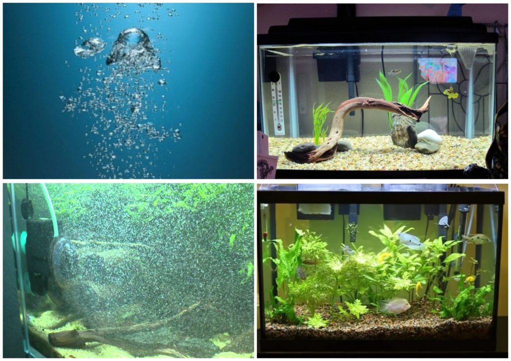 Gelembung yang naik ke atas pecah, menghancurkan debu, lapisan bakteri yang terus-menerus muncul di permukaan air. Selain indikasi vital yang penting untuk ikan, aerasi membawa beban dekoratif: lift gelembung menghiasi dunia bawah laut, menyenangkan mata, memindahkan tanaman, memaksa penghuni untuk bergerak lebih aktif.Akibatnya, beban pada perangkat sangat bertanggung jawab dan signifikan: kesehatan penghuni bio-TV, keindahan dunia air hanya akan mendapat manfaat dari keberadaan instalasi ini di dalamnya. Dan lebih mudah untuk merawat reservoir seperti itu: ruang menjadi lebih bersih, ikan dan tanaman hidup lebih lama, proses pembusukan ganggang tidak terjadi.