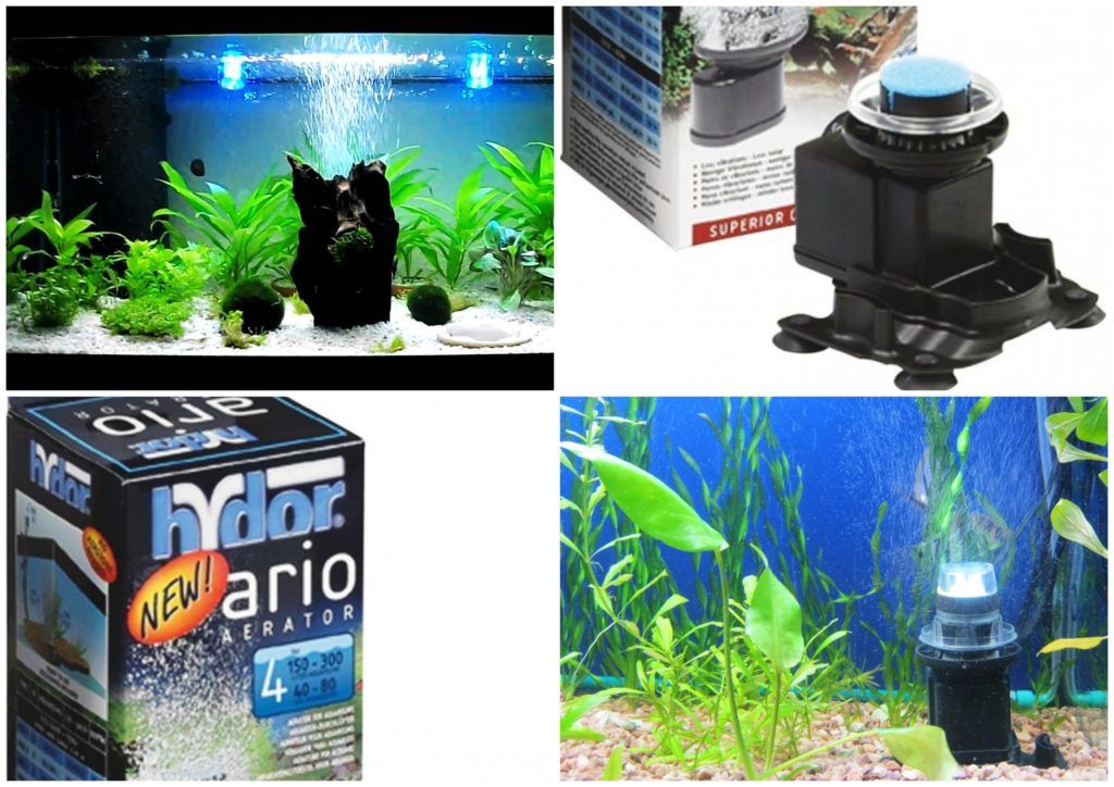 Juga, aerator bisa internal atau eksternal. Luar ruangan dapat dipasang di bawah tangki, di belakangnya, agar tidak merusak "pemandangan laut". Yang internal ditempatkan di bagian bawah atau dinding akuarium - kebisingannya hilang.
