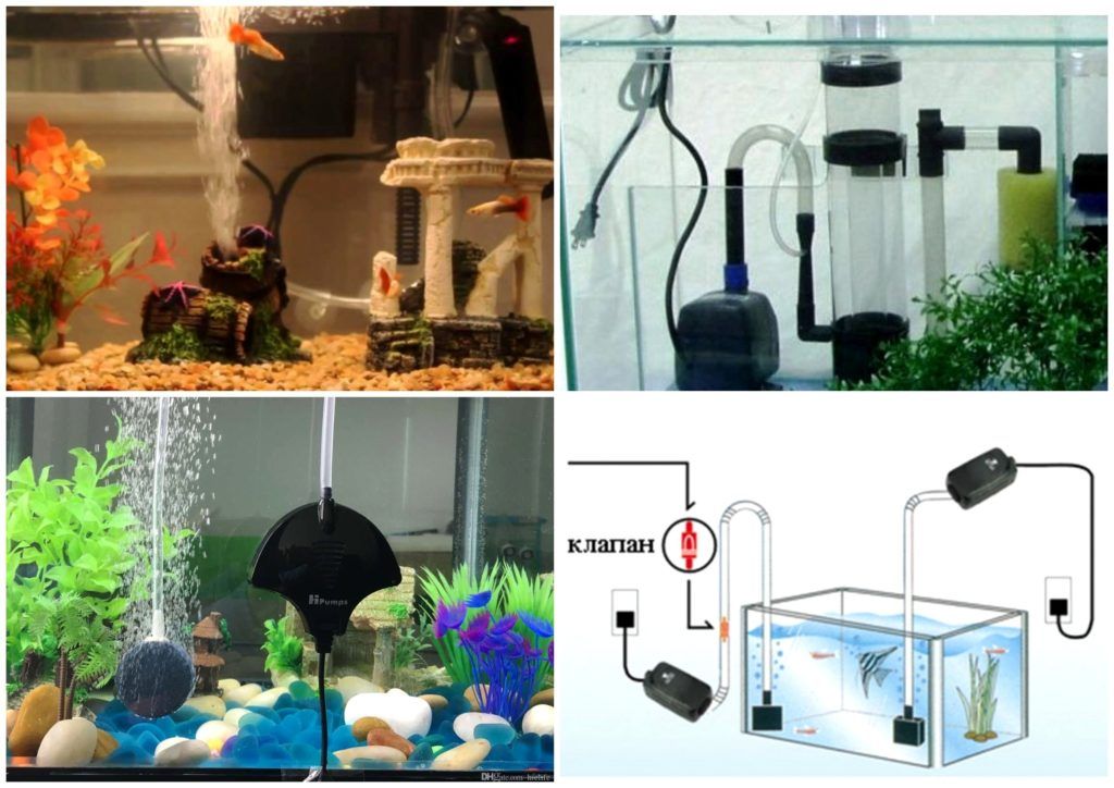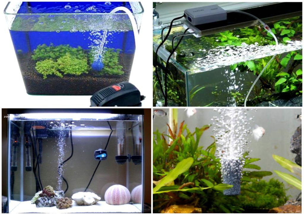 Dalam kondisi alami, air jenuh dengan oksigen oleh ganggang dan kontak permukaan dengan udara. Sebuah "waduk" rumah kecil tidak dapat membanggakan ini, karena penghuninya akan membutuhkan bantuan. Agar konsentrasi bahan kimia yang mudah menguap menjadi seragam dan optimal, diperlukan konveksi buatan. Pencampuran dengan stasiun pompa kecil yang membawa udara ke dalam akuarium disebut aerasi.