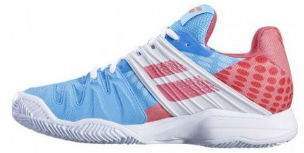Sepatu tenis wanita.Mereka dirancang untuk wanita yang lebih menyukai permainan intens dan yang ingin merespon setiap pukulan lawan. Seperti pada model pria, sol luar dikembangkan dengan partisipasi Michelin. Karet khusus dari Michelin memiliki ketahanan aus yang sangat baik. Dikombinasikan dengan ini, ini memberikan cengkeraman yang andal di permukaan tanah. Bantalan tumit EVA yang sangat empuk untuk perlindungan tumit yang sempurna.