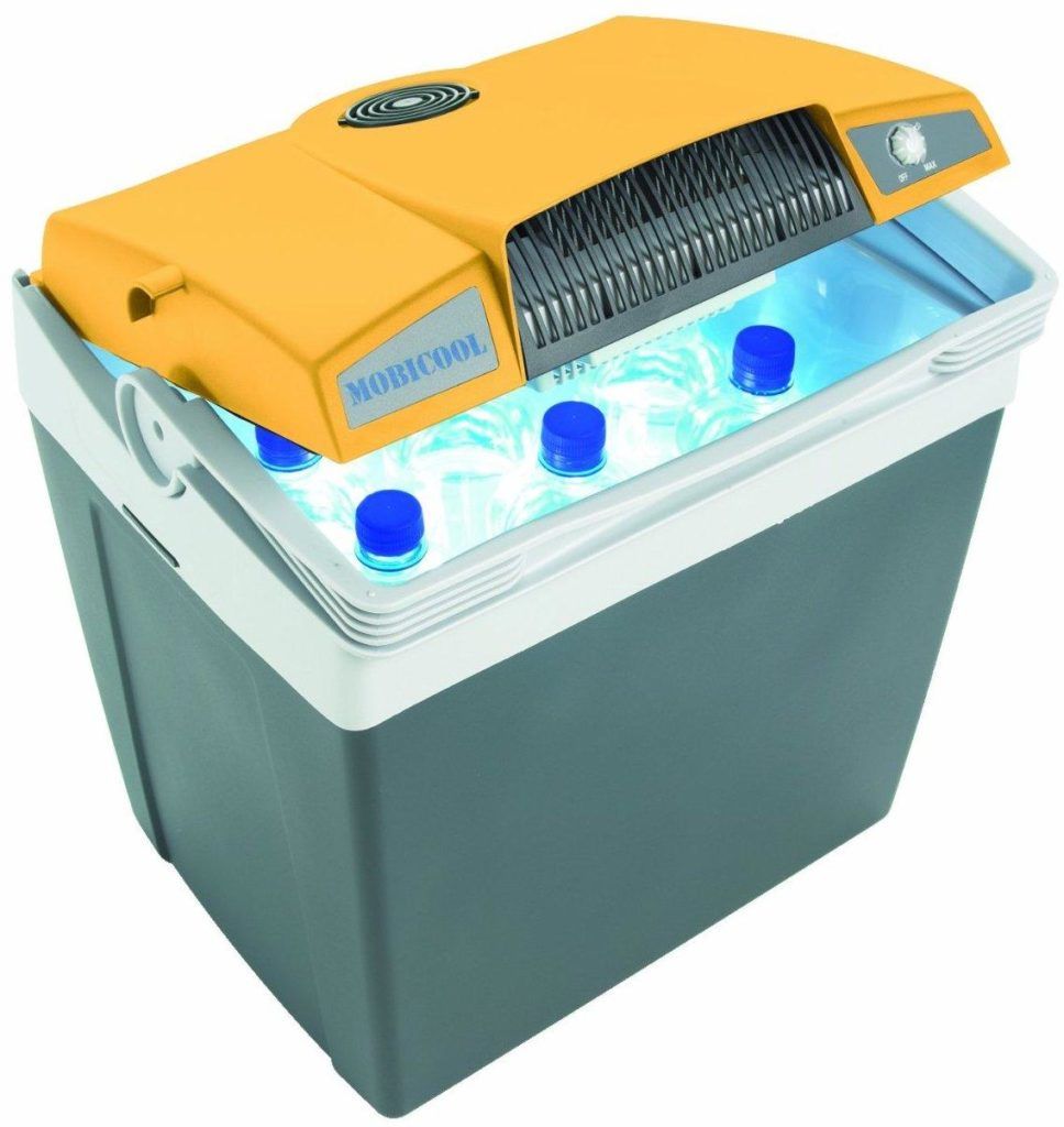 Ini adalah kulkas otomatis portabel yang murah, tetapi dengan kinerja yang sangat baik. Bobotnya 4,3 kg, dua kipas terpasang di tutupnya, yang memungkinkan Anda mendinginkan makanan dengan cepat hingga 18 derajat di bawah suhu sekitar. Kapasitas kamera adalah 18 liter, bekerja dari listrik dan dari baterai. Penting bahwa dengan harga murah perangkat ini mengkonsumsi sedikit energi.