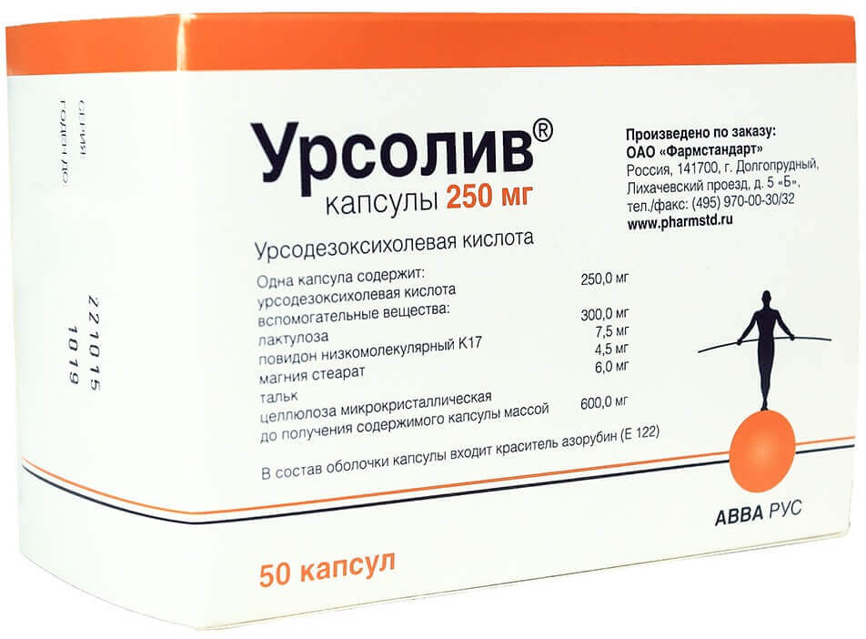 Obat ini adalah obat asam empedu. Ini mengandung asam ursodeoxycholic. Obat ini dianjurkan untuk dikonsumsi untuk penyembuhan penyakit pada sistem pencernaan. Ini mengurangi produksi kolesterol. Obat ini bekerja paling baik jika penyakitnya dalam tahap yang belum berkembang. Dianjurkan untuk minum obat di malam hari dengan banyak air. Pada hari pertama pengobatan, perlu untuk mengontrol kandungan enzim hati dalam tubuh.