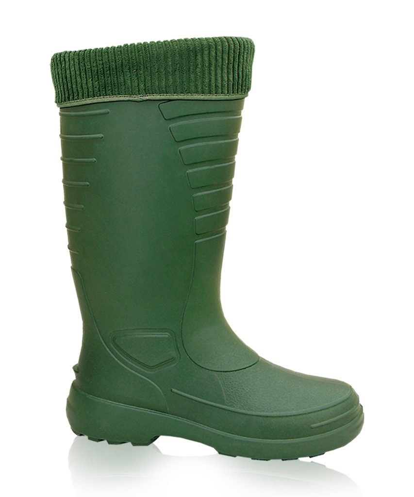 Sepatu yang terbuat dari ethylene vinyl acetate memiliki keunggulan tersendiri, sehingga dalam beberapa tahun terakhir menjadi semakin populer. Bahan ini sangat ringan dan memiliki perlindungan kelembaban yang sangat baik. Ini mengisolasi panas dengan sempurna dan tidak melepaskannya untuk waktu yang lama. Hasilnya, sepatu bot EVA sangat hangat dan nyaman. Dari bagian dalam boots terdapat tab khusus yang menambah kenyamanan saat dipakai. Untuk seorang nelayan, sepatu bot EVA adalah pilihan yang bagus. Mereka tidak berubah bentuk oleh keanehan cuaca atau dampak mekanis, bahkan salju yang parah tidak takut pada EVA.