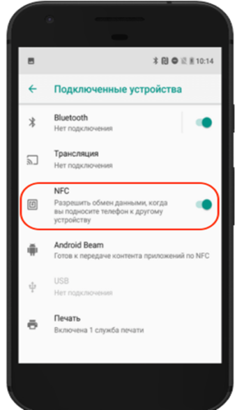 Setelah menekan, fungsi NFC dihidupkan, di bagian "Pengaturan", kartu untuk pembayaran tanpa kontak ditautkan, serta aplikasi di mana uang didebit untuk membayar pembelian.