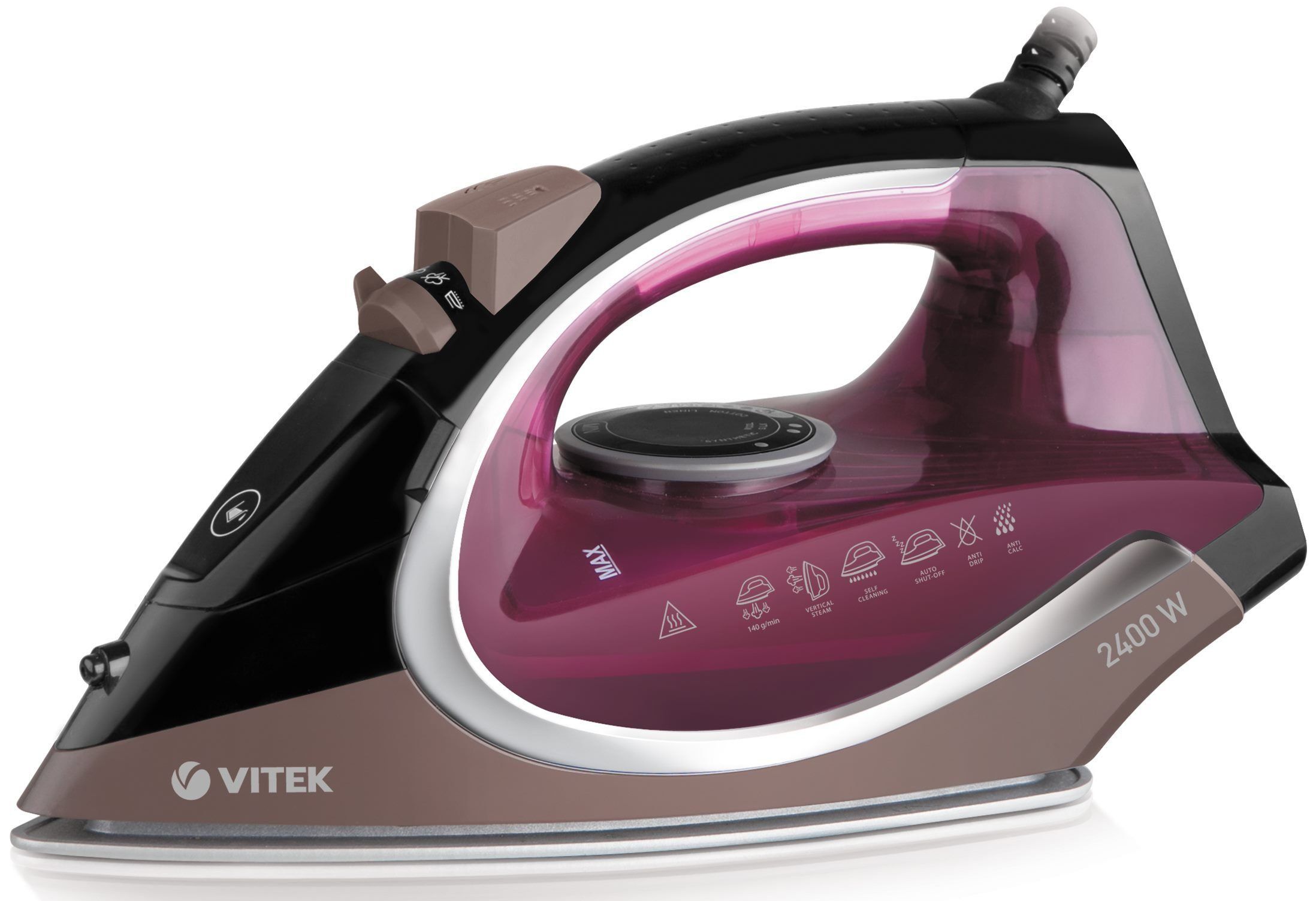 Model dengan generator uap ini memastikan stabilitas pasokan uap. Tekanan uap maksimum mencapai 6 bar. Distribusi optimalnya difasilitasi oleh sol keramik UniCera dua lapis. Kekuatan perangkat dalam 2400 W memastikan efisiensi proses penyetrikaan.
