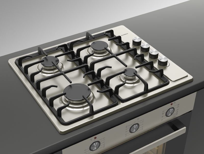 Ada 4 pembakar di meja kompor gas. Satu dengan daya 1,0 kW, 2 pembakar dengan daya 2,0 kW dan yang terakhir dengan daya 2,5 hingga 3,0 kW.Untuk kenyamanan, panel dilengkapi dengan kunci kontak listrik bertenaga 220 V. Dimensi keseluruhan adalah lebar 59 cm, dalam 51 cm, dan tinggi 8,1 cm.