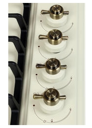 Kompor gas dikendalikan oleh regulator. Untuk kenyamanan, fungsi pengapian listrik disediakan. Pembakar didistribusikan oleh daya sebagai berikut - dua dari 1800 W, sirkuit tunggal; satu - 1000 W, sirkuit tunggal dan 3400 W - sirkuit ganda.