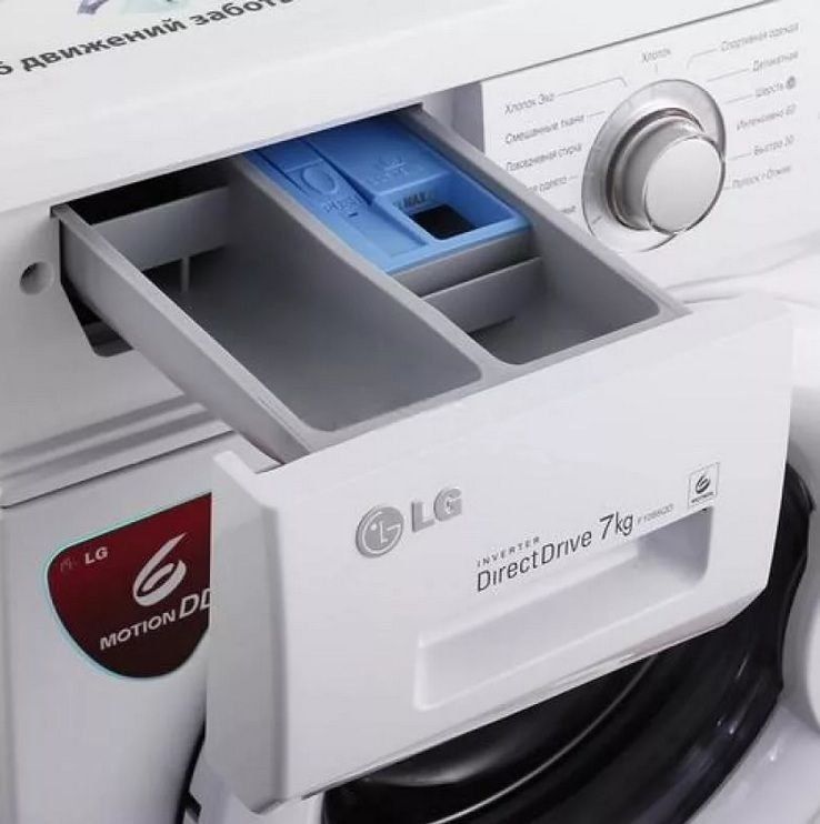 Jika Anda membutuhkan mesin cuci yang ringkas, maka kami sarankan untuk mempertimbangkan model LG F-2J6WS0W, dimensinya adalah 60x45x85 cm, peralatan tersebut termasuk dalam kelas energi A ++. Pemuatan adalah tipe frontal dan menahan linen hingga 6,5 kg, jika jenis kainnya adalah wol, maka bebannya akan menjadi setengahnya. Perangkat ini memiliki 14 opsi pencucian, selain yang standar dan khusus, ada pasokan uap. Limbah air mencapai 49 liter per pencucian.Fitur tambahan termasuk perlindungan kebocoran air, kontrol tingkat busa dan kontrol ketidakseimbangan. Kecepatan putaran hingga 1200 rpm.