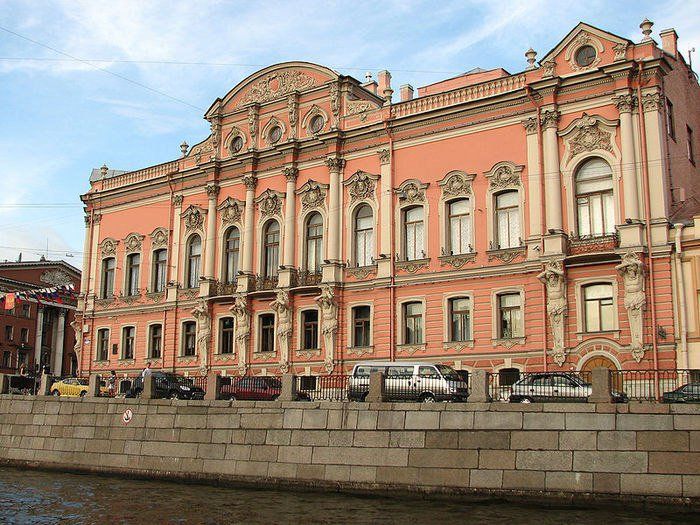 Istana ini terletak di tanggul Sungai Fontanka. Itu dirancang sesuai dengan Istana Stroganov yang sudah ada saat itu. Pembukaan museum jatuh pada abad ke-18 (1846-1848). Fasad bangunan dibuat dengan gaya Baroque dan Rococo. Kehebatan istana ini diberikan oleh banyaknya patung Atlantis yang menopang tiang-tiangnya, serta gambar mereka di bingkai jendela. Saat ini, gedung ini menyelenggarakan pertunjukan teater dan konser.Museum ini adalah istana pribadi terakhir yang dibangun di Nevsky Prospekt pada abad ke-19.