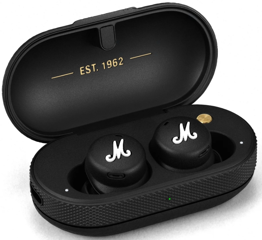Headphone nirkabel dengan mikrofon Marshall Mid Bluetooth Black dapat dibeli dengan harga 9.999 rubel.Tapi ini bukan hanya headset Bluetooth mono lainnya, ini adalah entri legendaris ke dunia suara status unik.