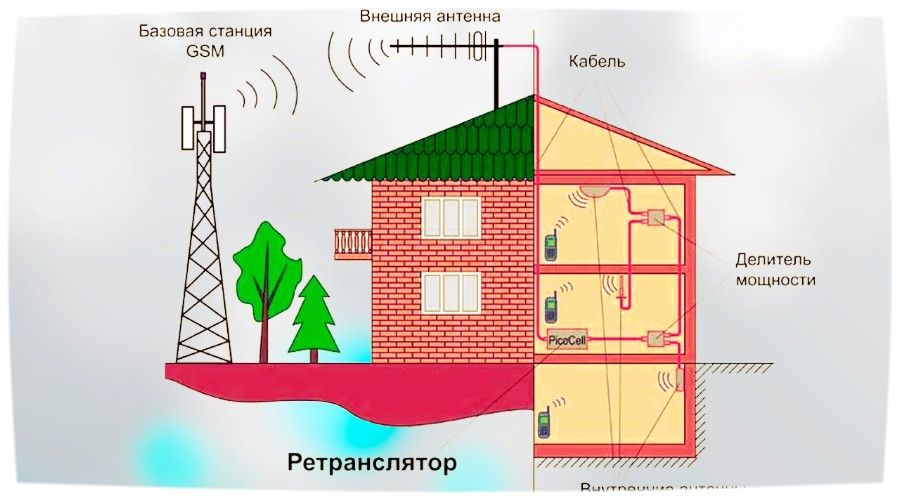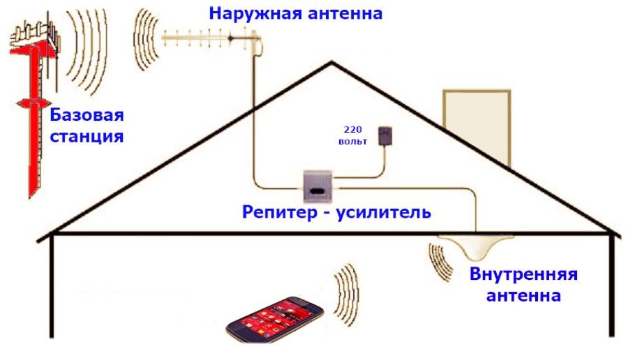 Semua repeater beroperasi berdasarkan prinsip mentransmisikan sinyal dari stasiun pangkalan ke antena eksternal, diatur ke gelombang komunikasi terbaik. Selanjutnya, sinyal ditransmisikan melalui kabel ke repeater, yang memperkuat kekuatan sinyal dan mengirimkannya ke antena peralatan dalam ruangan atau ke splitter jika ada beberapa titik koneksi ke jaringan.