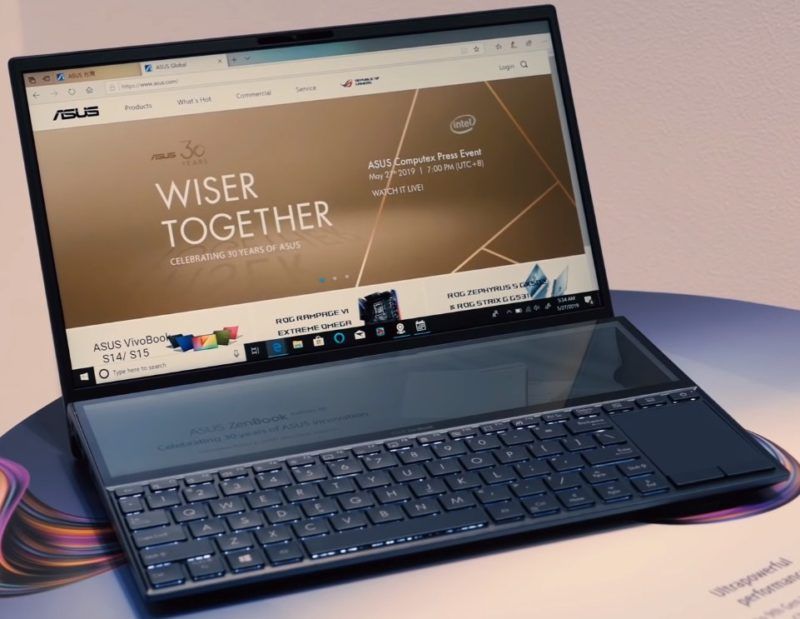 Tahun lalu, Asus mengejutkan kami dengan laptop yang tidak biasa - ZenBook Pro, di mana touchpad digantikan oleh layar Full HD touchscreen dengan diagonal 5,5 inci. Asus tidak berhenti di situ, dan pada 2019 di Pameran Teknologi Informasi Internasional Taipei COMPUTEX, perusahaan memperkenalkan gagasan barunya - ZenBook Pro Duo dan model junior ZenBook Duo.