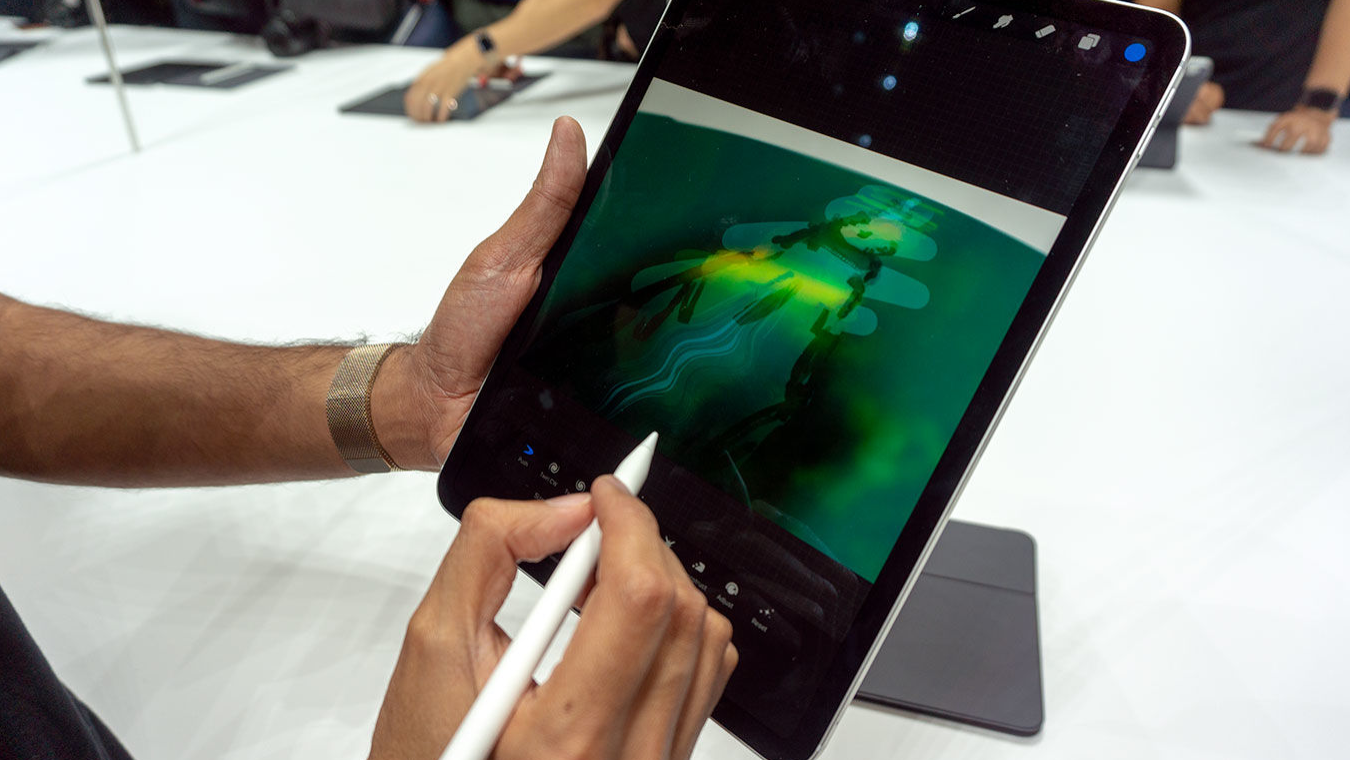Selain menawarkan lebih banyak real estat layar, tablet ini juga mengesankan dengan kecerahan dan kejernihan. Resolusi layar baru adalah 2388x1668, yang sesuai dengan kepadatan standar Apple 264ppi untuk model tablet menengah dan besar. Gamut warna lebar, True-Tone, dan ProMotion 120Hz juga didukung.