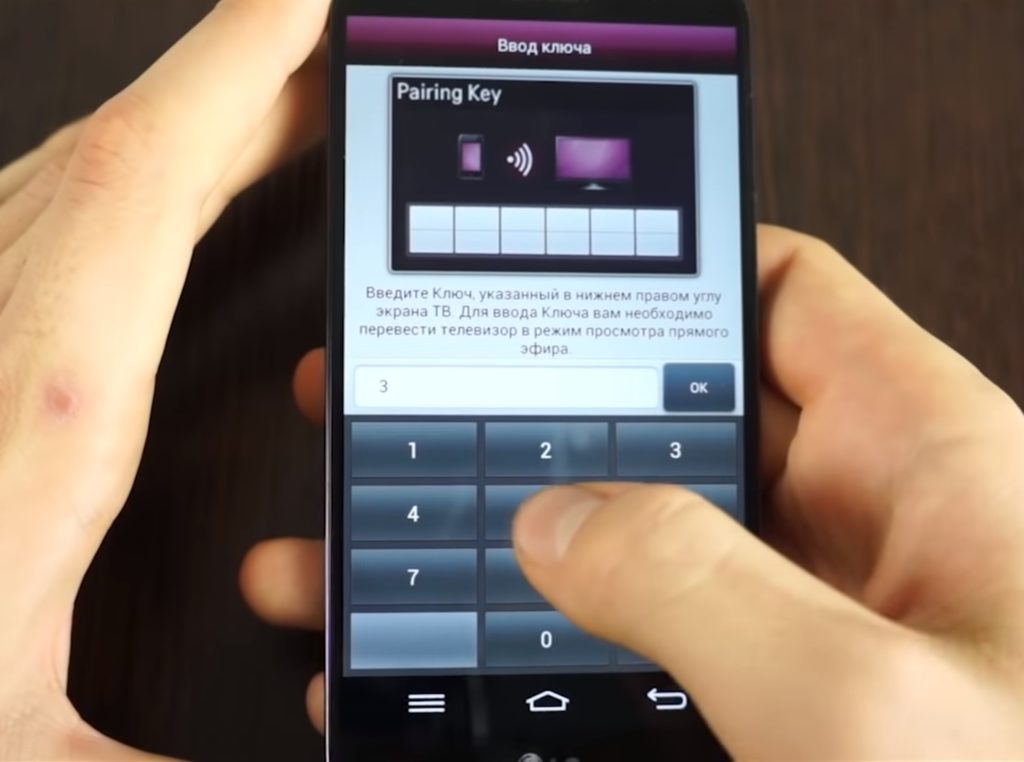 Untuk remote control, Anda perlu menghubungkan perangkat dan TV ke jaringan yang sama. Setelah terhubung, sebuah kode akan muncul di layar, yang harus dimasukkan di telepon. Setiap model memiliki kode sendiri.