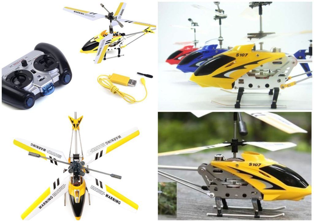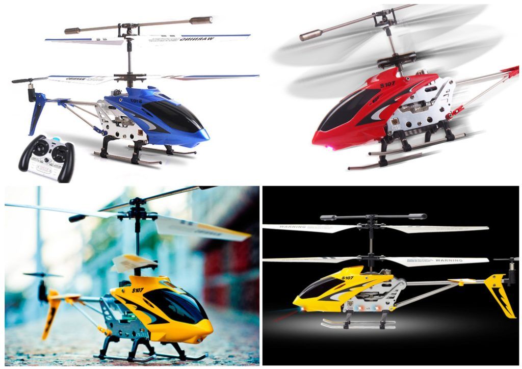 Helikopter memiliki tiga modifikasi. Versi dasar dilengkapi dengan remote control. Versi dengan huruf P (Syma S107P) memiliki generator gelembung sabun di antaranya capung kecil akan terbang. Perangkat dengan huruf C (Syma S107C) ini dilengkapi dengan kamera, meskipun tingkat perekamannya sangat rendah, tetapi lebih terlihat seperti dekorasi primitif.