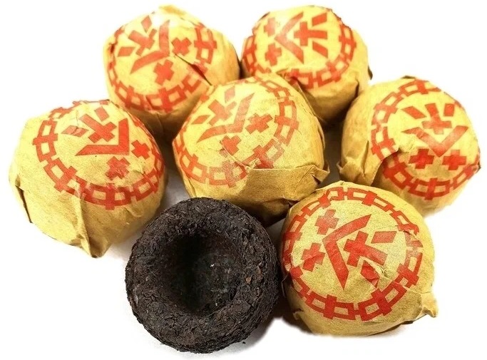 Daun besar hitam Cina yang ditekan dalam bentuk teh "sarang" memiliki warna kuning cerah. Ini juga memiliki aftertaste prune.