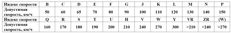 | Indeks kecepatan maksimum | T | R, S, T | TH | R | T, H, V |