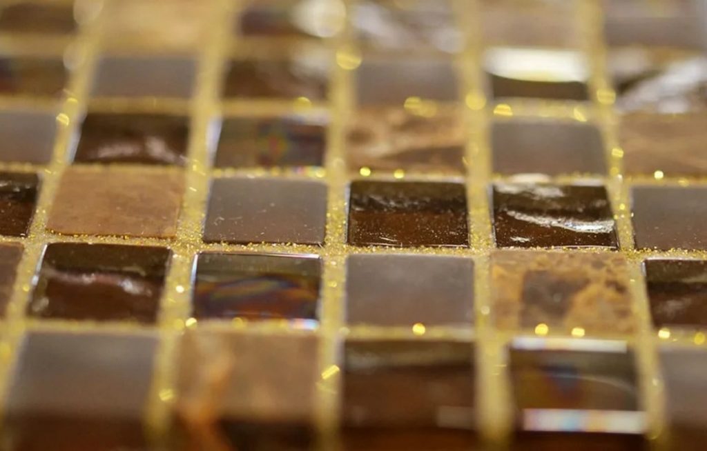Jika kita berbicara tentang meletakkan ubin berdasarkan permukaan yang mengkilap dan mengkilap, maka penggunaan glitter pada jahitannya akan menjadi keputusan yang tepat. Bahan nat itu sendiri harus sesuai dengan kualitas dan gaya ubin.Jika modul ubin kelas premium digunakan, maka jahitannya harus dibuat dari bahan mahal yang sama, jika tidak maka akan merusak seluruh tata letak di masa depan. Untuk situasi ini, campuran Fugasim paling cocok, yang mudah diterapkan di antara ubin, secara visual terlihat mahal, mudah dibersihkan, dan bercak emas atau perak yang ada dalam struktur akan memungkinkan campuran untuk berbaur secara harmonis dengan mosaik apa pun. desain dan nada. Campuran yang sama juga dapat ditemukan dengan komponen fosfor dalam komposisi, yang akan bersinar dalam gelap, memberikan ruangan efek yang tidak biasa mengisi ruang dengan kunang-kunang. Perlu dicatat bahwa melalui penggunaan pengisi fosfor di dalam ruangan dimungkinkan untuk menandai lokasi soket atau sakelar - dengan cara ini akan lebih mudah untuk menemukannya tanpa adanya penerangan umum. Pada saat yang sama, campuran dengan kilau dapat diletakkan di jahitan bahkan di sepanjang lapisan luar - pantulan matahari terbit akan bermain dengan rumit pada inklusi kecil.