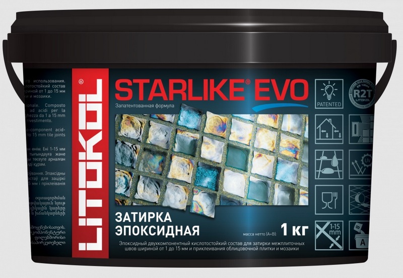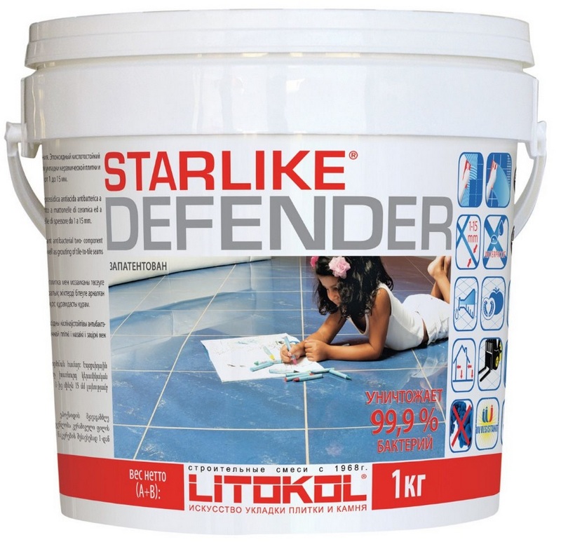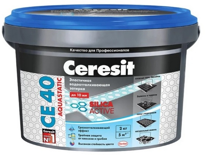 Pengisi ini (kecuali kilau perak) memiliki sifat antibakteri, anti air, dan tahan beku. Secara terpisah mengerjakan resistensi terhadap zat dengan keasaman tinggi.Dapat diterapkan pada ubin keramik dan mosaik kaca. Warna komposisinya abu-abu polos. Biaya yang disarankan untuk rantai ritel adalah 3.700 rubel.