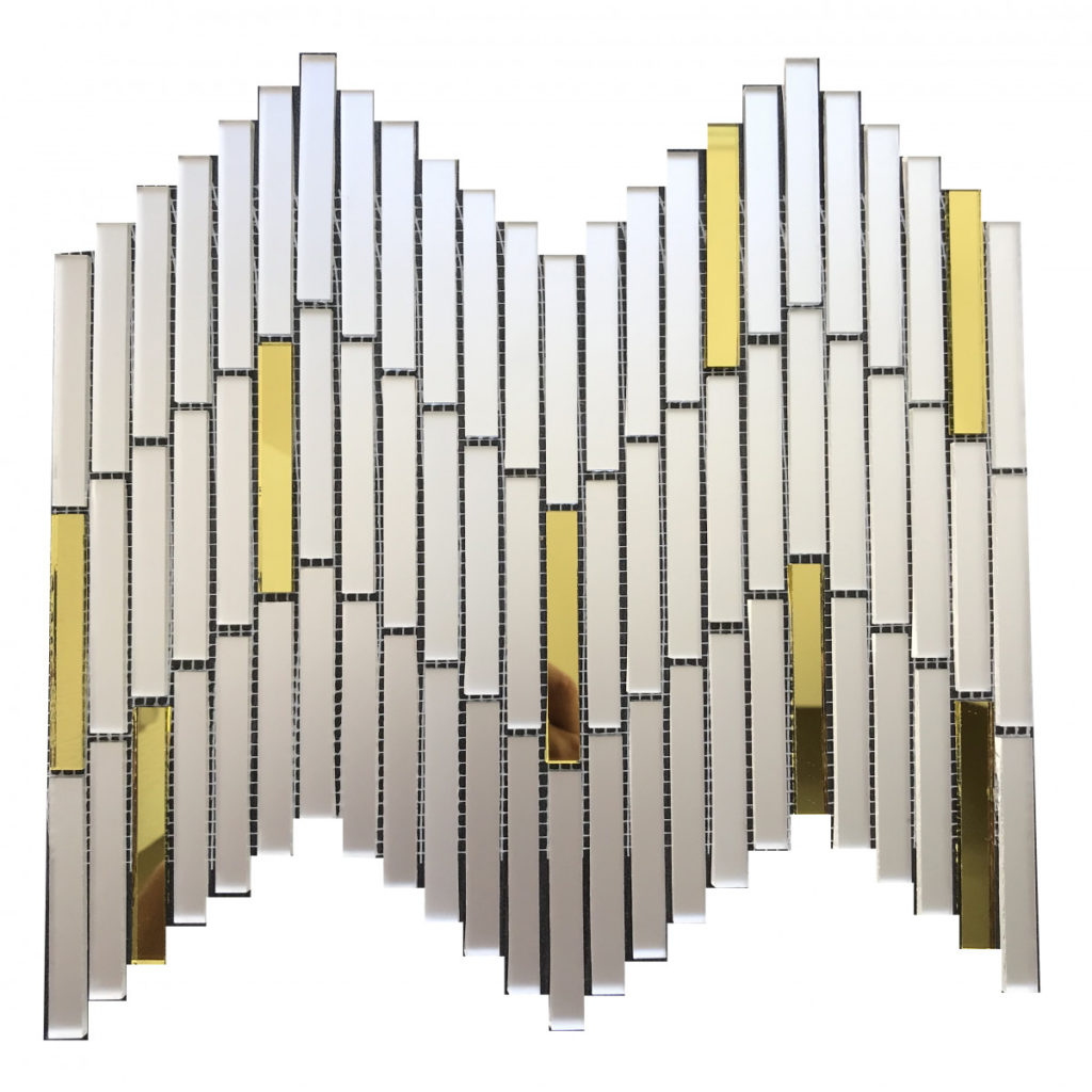 Mosaik kaca sangat diminati pembeli. Tekstur yang terangkat terlihat menarik di dinding.Menggunakan produk seperti itu, Anda dapat menyelesaikan kamar mandi, toilet, ruang tamu atau kamar tidur. Bahan cermin tidak mudah kotor dan dapat dipadukan dengan segala jenis pelapis.