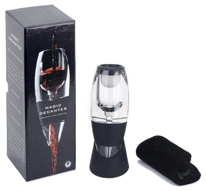 Perangkat sederhana untuk memenuhi minuman dengan oksigen. Ini juga memungkinkan Anda untuk dengan hati-hati, tanpa menumpahkan anggur, menuangkannya ke dalam gelas. Diproduksi dari plastik hitam berkualitas tinggi yang aman, yang memberikan tampilan yang mulia. Harga rata-rata: 850 rubel.