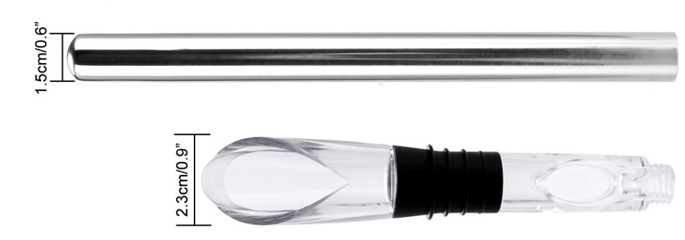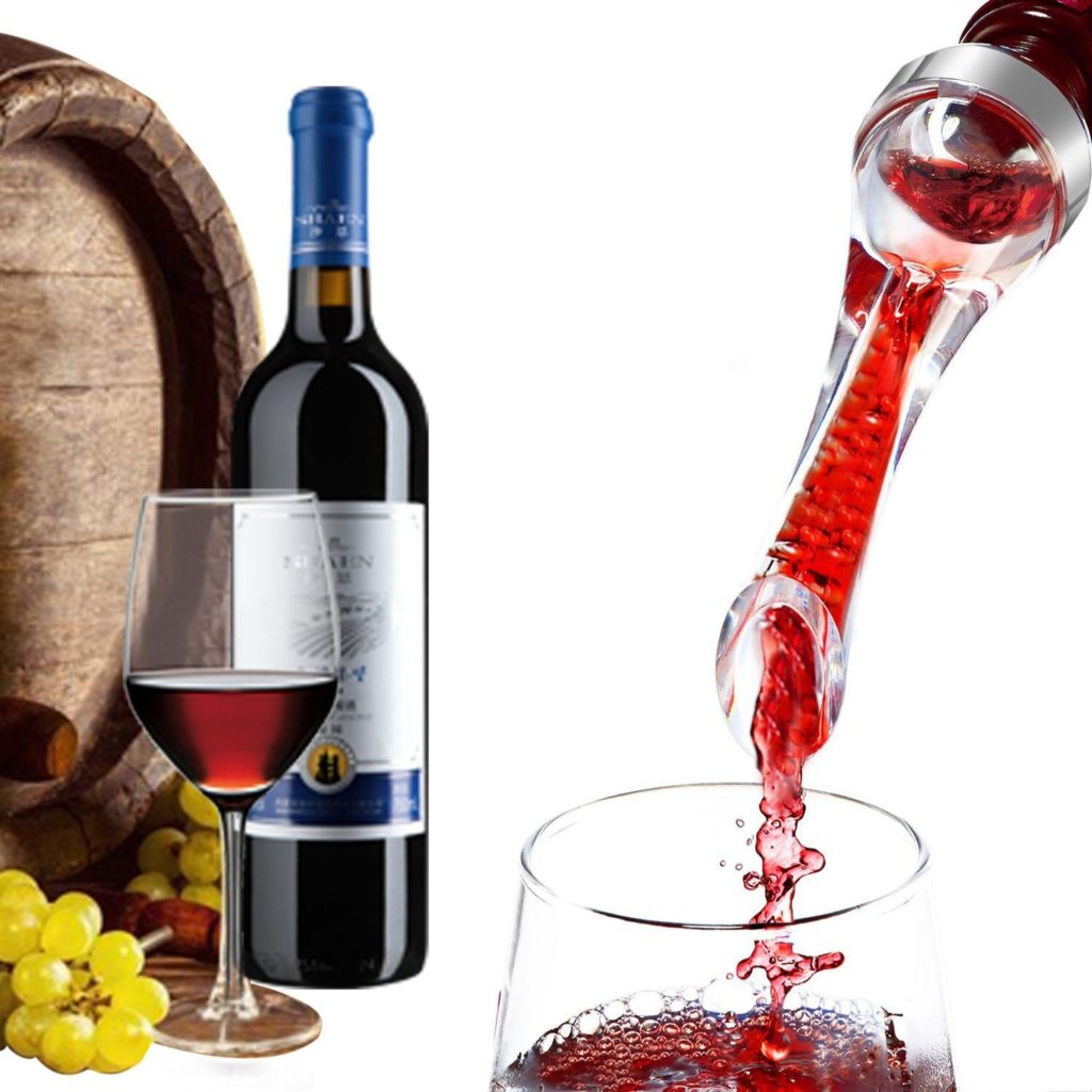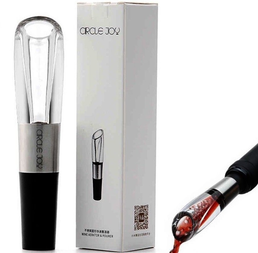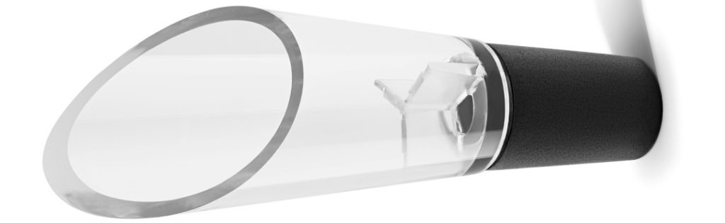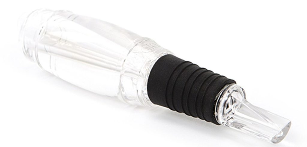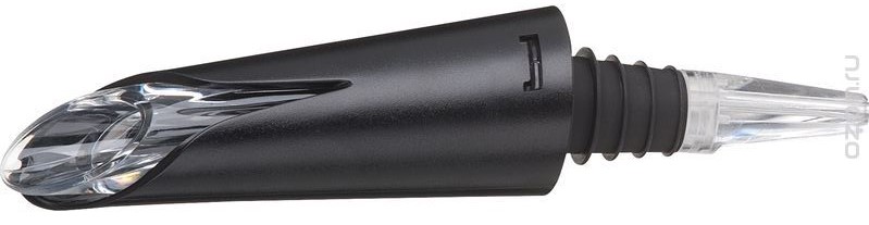 Produk merek terkenal, terbuat dari logam dan silikon. Berkat desain ini, ketika anggur memasuki saluran, ia bercampur dengan oksigen (berasal dari lubang mikro di saluran), tanin teroksidasi dan hasilnya adalah minuman dengan rasa dan aroma yang kaya, tanpa kotoran tambahan. Diameter 2,4 cm, panjang 11,5 cm Harga: 789 rubel.