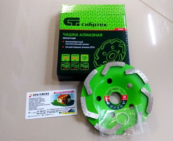 Ini dipasang pada penggiling dengan daya melebihi 950 W. Ini dirancang untuk meratakan permukaan dan membersihkan permukaan dari cat dan bahan keras lainnya. Granit, beton, batu buatan dan alam dapat diproses. Sistem tidak memerlukan pasokan air. Cangkir memiliki ketahanan aus yang diperlukan, dapat digunakan untuk waktu yang lama.