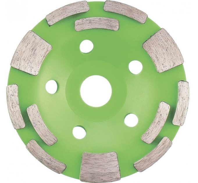 Dimungkinkan untuk menghilangkan dan menggiling semua jenis permukaan keras (granit, beton, berbagai jenis batu). Basis terbuat dari baja yang diperlakukan khusus. Permukaan dibagi menjadi beberapa segmen. Sistem tidak menyediakan pendingin air. Bagian yang berfungsi diisi dengan berlian berkekuatan tinggi. Teknologi ini memberikan kinerja tinggi dan kualitas penggilingan yang sangat baik.
