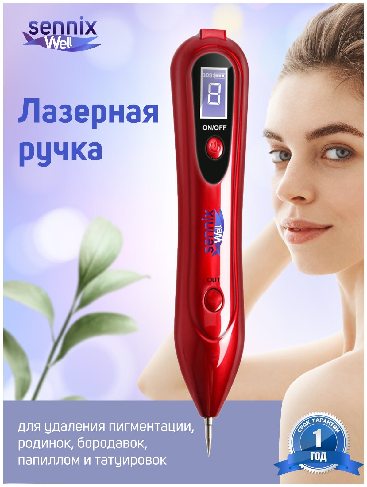 Ada senter built-in yang menerangi area yang dirawat. Model ini memiliki sembilan mode umpan laser.Bekerja dari akumulator. Pengisi daya USB disertakan. Harga modelnya adalah 2000 rubel.