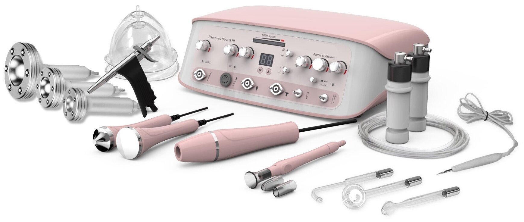 Perangkat modern dibuat dalam warna pink yang stylish. Dengan model ini, mudah untuk memecahkan masalah perubahan kulit anti-penuaan dan mengembalikan keseimbangan secara keseluruhan.