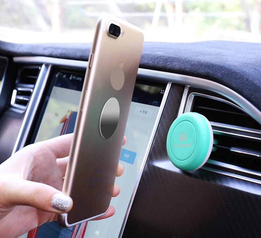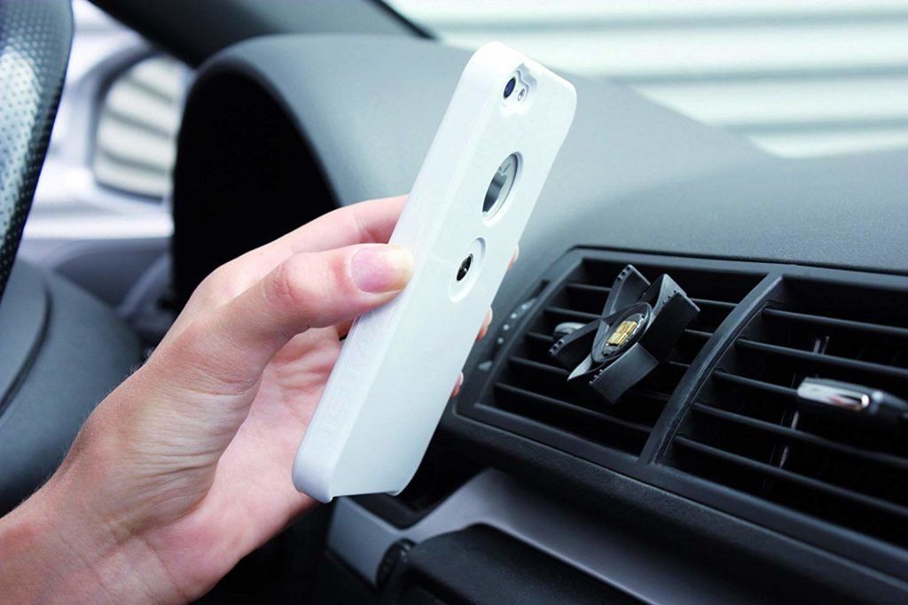 Untuk memperbaiki smartphone, Anda perlu memasang film khusus dengan sifat magnetik padanya. Magnetnya cukup kuat untuk menahan ponsel dengan stabil saat dikendarai dan diguncang. Desainnya memungkinkan Anda untuk mengisi baterai smartphone Anda saat mengemudi, yang dudukannya dilengkapi dengan pengait kecil untuk menahan kabel pengisi daya. Biaya rata-rata adalah 1.790 rubel.